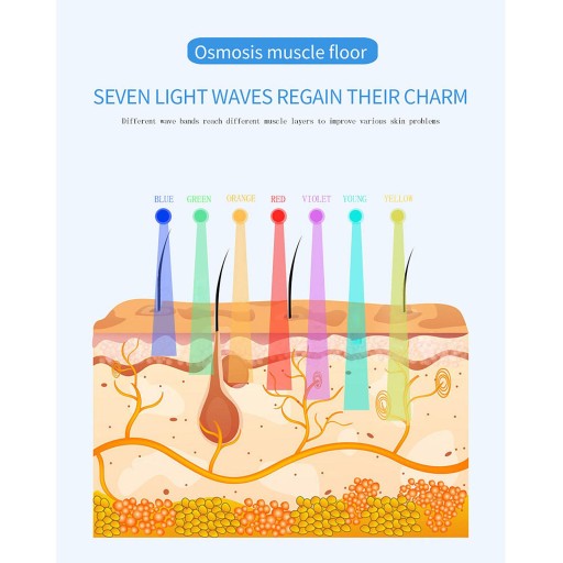 Siedem kolorowych terapeutycznych świateł, różne kolory mają różne długości efektów
