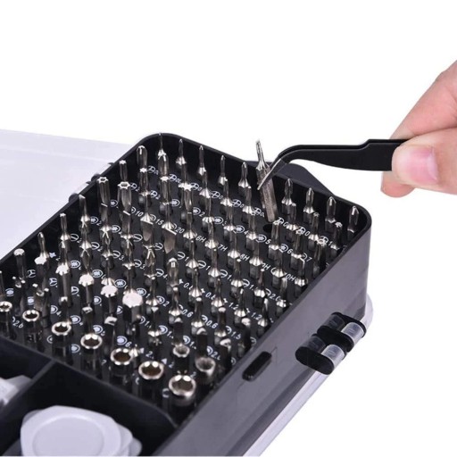Zawiera 115 elementów, w tym 100 bitów precyzyjnych, ergonomiczny wkrętak, przedłużki, adapter, pęsetę, przyssawkę, otwieracze i wiele innych.