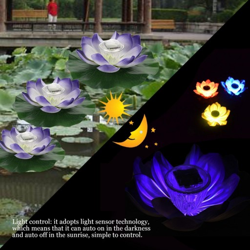 Wodoodporna dioda LED zasilana energią słoneczną zmieniająca kolor kwiat lotosu pływająca lampa ogrodowa kolorowy fioletowy
