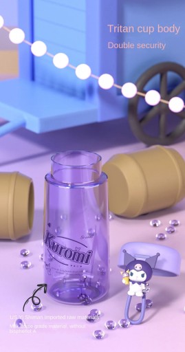 Бутылка для воды Sanrio Kawaii Kuromi Cinnamoroll, 350 мл, прозрачная соломенная трита