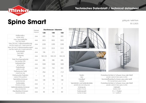 Schody kręcone Spino Smart mogą być malowane proszkowo w trzech różnych kolorach. Jeśli wolisz efektowny wygląd, możesz zdecydować się na mocną czerń. Opcje kolorów szarego i białego są jednak nieco bardziej subtelne. Ten ostatni szczególnie elegancko i prosto pasuje do pomieszczenia.