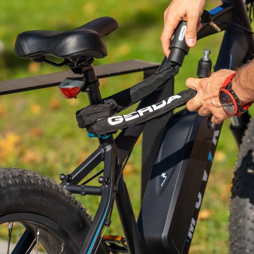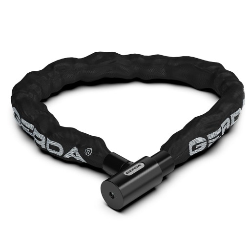 Łańcuch rowerowy – klasyka w zabezpieczeniu rowerów. Łańcuch zbudowany ze stalowych ogniw 8 mm, o okrągłym przekroju, w osłonie tekstylnej. Zapięcie rowerowe CONTRA 900/8V to łańcuch o długości 90cm, gwarantujący komfortowe przypinanie.