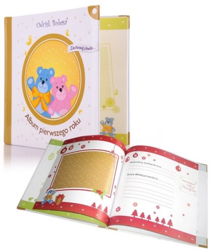 Radosne chwile spędzone razem z dzieckiem są niezwykle cenne, ale zarazem ulotne. Aby z nich zostało jak najwięcej proponujemy nasz Album Pierwszego Roku. Jest to jedyna w swoim rodzaju księga na pamiątkowe wpisy oraz zdjęcia. Kolorowa i bajeczna szata graficzna będzie stanowić idealne tło dla zdjęć Maluszka, a specjalnie przygotowane miejsca na wpisy rodziców ułatwią zapisywanie najważniejszych i najbardziej przyjemnych chwil spędzonych z dzieckiem. Album jest przygotowany tak, aby dokumentował i upamiętniał cały pierwszy rok z jego życia. Oprócz tego w Albumie znajduje się miejsce na umieszczenie pamiątkowego pukla włosków oraz opaskę ze szpitala. Dodatkowo w Albumie jest specjalne miejsce przeznaczone na odcisk rączki i stopy dziecka, które będą przypominały o wszystkich szczęśliwych chwilach spędzonych z Maluchem. Album Pierwszego Roku to wyjątkowa księga, która z pewnością stanowić będzie wzruszającą pamiątkę dla całej rodziny. Jest ona także doskonałym prezentem dla rodziców dziecka, jak i dla niego samego.