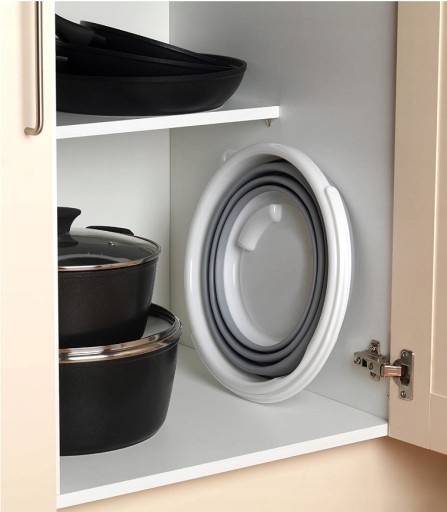 Trwała, solidna i niezwykle kompaktowa konstrukcja. Wykonana z najwyżej jakości materiałów: odpornego tworzywa sztucznego i silikonu. Rozkładanie i składanie wiaderka jest łatwe i zajmuje dosłownie chwilę. Po złożeniu zajmuje niewiele miejsca. Bez problemu schowamy ją w szafce kuchennej czy w łazience. To doskonały sposób na zaoszczędzenie miejsca w Twoim domu. Modna stylistyka wpasuje się w każde wnętrze. Wiadro dzięki możliwości złożenia świetnie sprawdzi się jako akcesoria turystyczne.