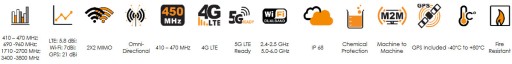 - Powyższe funkcje utrzymane są w zakresie od 690 do 5800 MHz w odpowiednich pasmach , w tym 450 MHz