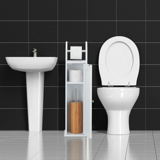 Akcesoria toaletowe: Wąska szafka boczna do przechowywania papieru toaletowego z uchwytem