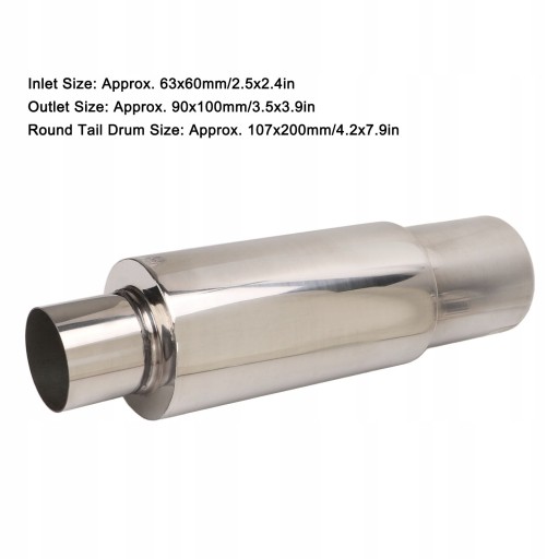 4. Rozmiar: rozmiar wlotu wynosi 63 x 60 mm/2,5 x 2,4 cala, rozmiar wylotu to 90 x 75 mm/3,5 x 3,0 cala, a rozmiar bębna z okrągłym ogonem to 101 x 200 mm/4,0 x 7,9 cala.