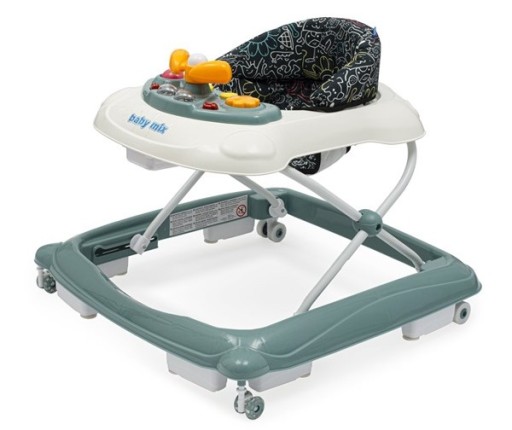 Multifunkcyjny chodzik dziecięcy Baby Mix z silikonowymi kółkami ułatwia naukę chodzenia. Chodzik został wyposażony w wygodne, specjalnie wyprofilowane siedzonko które zapewnia odpowiednią postawę dla kręgosłupa. Wielofunkcyjny panel zabawowy: z efektami świetlnymi, kierownicą z klaksonem, którą można obracać, kwiatek, grzechotkę, dwa przyciski, które grają melodie i dwa światełka. Piękny chodzik z zabawkami oczaruje małych odkrywców i pozwoli im bawić się jeszcze dłużej. Jeździk został wyposażony w specjalny system zabezpieczający przed wywrotką, który zapewni komfort i bezpieczeństwo maluchowi.