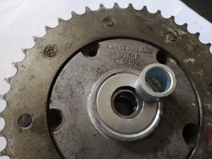 Dekiel osłonowy – pasuje tylko do WSK 125 z aluminiową zębatką, stanowi obsadę do filcu i tulejki pomiędzy łożyskiem zębatki a wahaczem (patrz na ostatnie zdjęcie poglądowe).