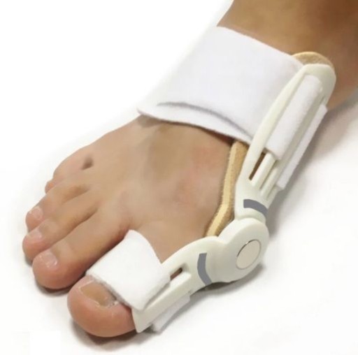 Koryguje ułożenie dużego palca stopy (leczenie zachowawcze i pooperacyjne).