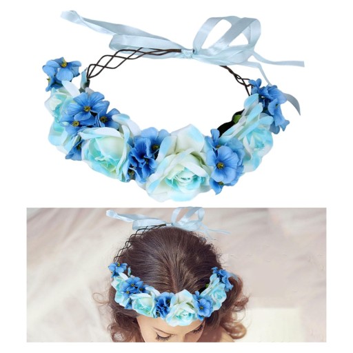 Женщины Цветок Оголовье Венок Искусственные Цветы Цветочница Головной Убор Синий