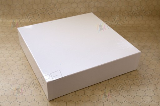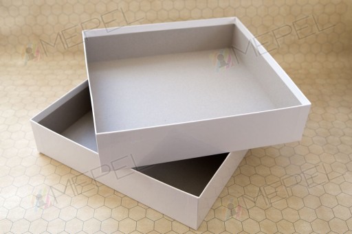 Materiał wieka i dna: tektura lita 2mm, jednostronnie oklejana. Wieko i dno oklejane kredą 130, matowe.