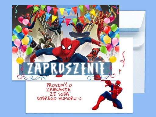 ZAPROSZENIE SPIDERMAN NA URODZINY DZIECKA + KOPERTA GRATIS