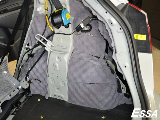 - warstwa 2️⃣/3️⃣ - miękkie, porowate materiały pochłaniające dźwięk o strukturze otwartych i/lub częściowo zamkniętych komórek, które oprócz właściwości dźwiękochłonnych pełnią jednocześnie rolę przekładek amortyzujących i tłumiących rezonanse plastikowych elementów tapicerki oraz redukują trzeszczenie i skrzypienie tych elementów (np. poliuretanowe pianki dźwiękochłonne, maty wyciszające na bazie włókniny, filce akustyczne).