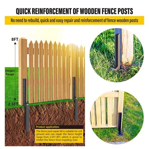 4. DOBRE WSPARCIE: Zestaw naprawczy słupków ogrodzeniowych ma trójwymiarową funkcję wzmocnienia podpory, dzięki czemu drewniany płot jest mocniejszy i stabilniejszy.