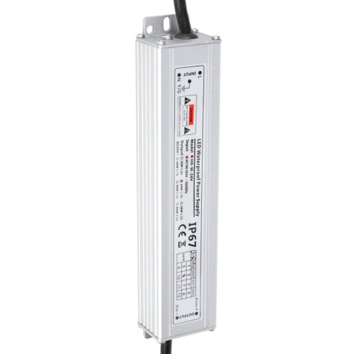 Cechy: Wodoodporność IP67, odpowiednia zarówno do użytku na zewnątrz, jak i wewnątrz, nie boi się deszczu, mgły, silnego światła słonecznego i innych trudnych warunków. Wbudowany transformator miedziany, wydajność konwersji ponad 85%. Stałe napięcie wyjściowe zapewniające stabilność Jest uszczelniony wysokiej jakości aluminiową obudową, nierdzewną i antykorozyjną, szybkim rozpraszaniem ciepła. Odporny na zimno i ciepło, silna adaptacja do środowiska. Nadaje się do taśmy świetlnej LED, rury poręczowej, światła spryskiwacza ściennego, lampy liniowej, taśmy RGB itp. Specyfikacja:Napięcie wejściowe: 100 ~ 264VAC, 50/60HzNapięcie wyjściowe: DC24V/0.8AMoc wyjściowa: 30WDokładność napięcia wyjściowego: ± 0.5VE Wydajność: ≥85%Wodoodporność: IP67Środowisko pracy:-30~60℃, 20%~90%RH (bez kondensacji) Środowisko przechowywania: -40 ~ 80 ℃, 10% ~ 95% RHD Wymiar: 150 x 35 x 20 mm / 5,9 x 1,4 x 0,8 cala Lista pakietów: 1 x LED wodoodporny