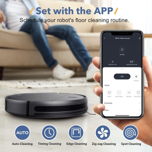 2. KONTROLA APLIKACJI: Odkurzacz robot obsługuje łączność Wi-Fi 2,4 GHz i Bluetooth, a dzięki aplikacji TUYA możesz łatwo zaplanować sprzątanie, wybrać tryby czyszczenia, dostosować ssanie, a nawet otrzymywać powiadomienia. Bezproblemowo integruje się również z Asystentem Google, umożliwiając sterowanie bez użycia rąk za pomocą poleceń głosowych.