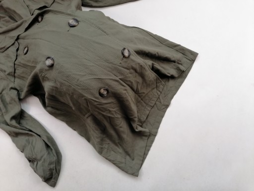 - bez podszewki, zapinany na guziki, kołnierzyk, kieszonki z przodu,