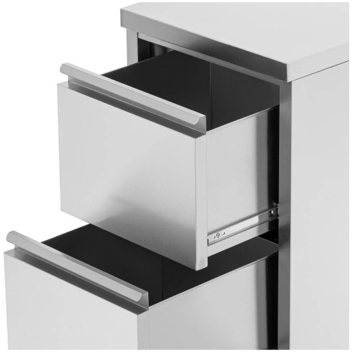 - - Szuflady, półka i obudowa szafki metalowej są wykonane z bezpiecznej dla żywności i łatwej w czyszczeniu stali nierdzewnej,