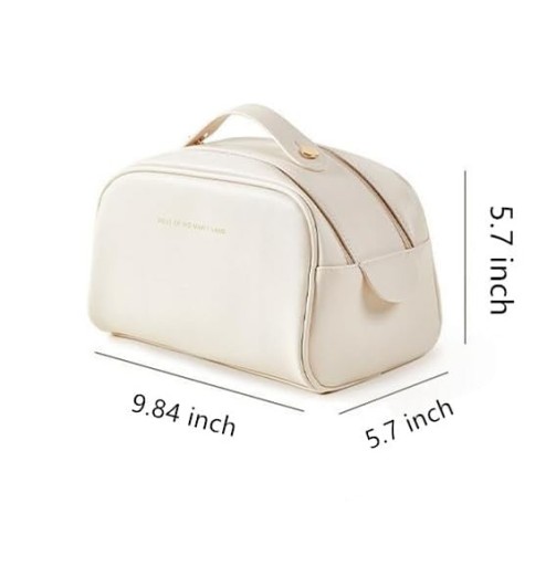✅Ta przenośna kosmetyczka wykonana jest z atrakcyjnej białej skóry PU, wytrzymałego zamka błyskawicznego i szybkoschnącego materiału odprowadzającego wilgoć. Nasza podróżna kosmetyczka ma główną komorę na produkty do pielęgnacji skóry, pędzle do makijażu i narzędzia, 2 boczne kieszenie na mniejsze produkty kosmetyczne, co ułatwia znalezienie niezbędnych kosmetyków, oraz wytrzymały, gładki zamek błyskawiczny zapewniający wyjątkowo długą żywotność.