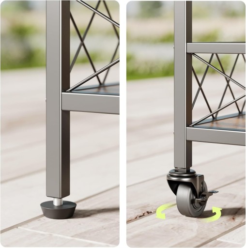 Ten wózek kuchenny ma 4 antypoślizgowe nóżki i 4 wózki (2 wózki z hamulcami), dzięki czemu można go wepchnąć w miejscu i miejscu w miejscu!