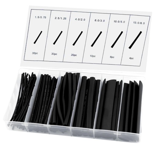 НАБОР ТЕРМОУСАДОЧНЫХ ТРУБОК, ЧЕРНЫЕ, 100 ШТ.