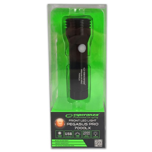 - Esperanza PEGASUS PRO posiada mocną białą diodę LED typu CREE T6, emitującą silne światło o mocy 7000 lx w trybie MAX.