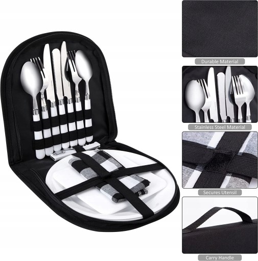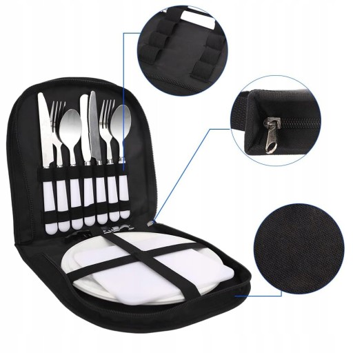 🥄 Doskonały zestaw sztućców: połączenie 2 łyżek, 2 widelców, 3 noży ząbkowanych, 2 talerzy, 2 serwetek, 1 deski do krojenia, 1 otwieracza do butelek, każde akcesorium ma własną komorę, a sztućce pozostają stabilne bez grzechotania podczas transportu.