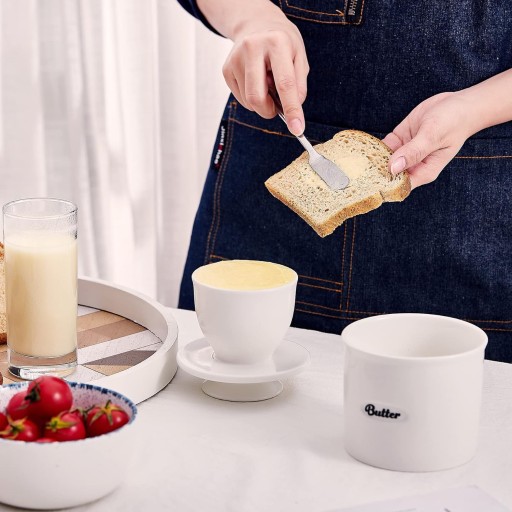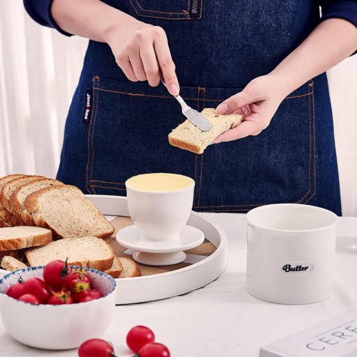Wlej zimn wod do podstawy naczynia do przewodu wody a nastpnie wó zmikczone maso do kubka z masem. Wymień pokryw na dno naczynia i gotowe Ciesz si pysznym aromatyzowanym masem Idealny rozmiar dla wikszoci rodzin u2013 w porównaniu z innymi masem dostpnych na rynku ten pojemnik na maso mieci okoo 1 i 12 paeczki mikkiego masa. Uyj tylnej czci yki aby mocno j docisn maksymalna pojemno to 2 paeczki mikkiego masa. atwe do codziennego uytku do wszystkich rodzajów masa. Trwaa i zdrowa porcelana Ten maselniczy garnek jest wykonany z wysokiej jakoci ceramiki rodzaju najwyszej jakoci bezoowiowej odpornej na odpryski odpornej na zarysowania byszczcej. atwy do trzymania i mycia nadaje si do zamraarki i zmywarki. Ciesz si mikkim i wieym masem u2013 nigdy wicej zimnego i twardego masa z lodówki Woda na dnie ma na celu utrzymanie masa zamknitego przed powietrzem zachowujc wieo duej i skuteczniej ni plastik. Ciesz si masem w temperaturze pokojowej kiedy tylko chcesz Wskazówki Przed uyciem naley oczyci i wysuszy pokrywk. Nadmiernie zmikczone maso jest najczstsz przyczyn wpadania masa do wody. Odwie zimn wod butelkowan lub filtrowan kadego dnia jeli to moliwe lub co 23 dni.