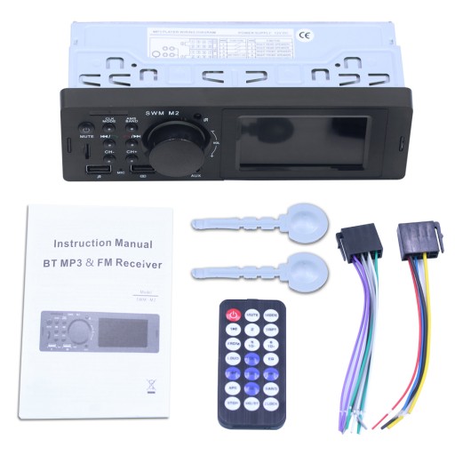 12VPlacement: In-Dash OSD Language: English Resolution: 480x234 Output Power: 4x60W Number of Channels: 4CH Material Type: Metal and ABS Product Size: 1 DIN Radio Frequency Response : 87.5-108.0MHz Features: - AUX Play, multiple choices: AUX jack can connect external audio sources such as MP3/MD. - Bluetooth compatible phone speaker: Bluetooth compatible wireless transmission, wireless connection regardless of data problems, compatible, Bluetooth compatible hands-free call, voice navigation and enjoy your songs. - U DISK/CARD: plug it into the device interface to play, the card memory supports up to 32GB. - FM radio function: you can listen to real-time traffic, information reports , weather reports, etc. to make driving less boring. - Black wiredrawing panel. - With loading m mobile phone: fast charging and long battery life; Support Android/IOS.-Undamaged Music: High-quality music releases songs that are clear and noiseless for a great listening experience. Type: Car MP3 Card Slot: TFT Card Working Temperature: -10 ~ 60℃ Bluetooth Compatible Model: 4.0 For Fast Phone charging: IOS / Android PC interface type: general Button: physical Light button: blue Radio band: FM Radio chip: QN8035 Power amplifier chip: TDA7388 Remote control: card styling USB port and version: two with USB2.0 RCA : 4 RCA output AUX: support Software: AB3510 Screen model: LCD VAFM: Yes Screen Timeout: Yes Reset Button: Yes Supported Audio Formats: MP3 / WMA / WAV / FLAC Host Depth: 60mm Panel Size: 188*58mm Basic Functions - FM - Remote Control - U Disk / Card - AUX Play - Bluetooth - Compatible - Audio Out RCA can be connected to a subwoofer (requires an active subwoofer) - With mobile phone charging (Android / Apple) Place of application: car Note: - Please notice Note that this model does not support CD movement, does not play CD and CD-ROM. Product weight: 458G / 16.16 oz. Product dimensions (L * W * H): 205 * 80 * 125 MM / 8.07 * 3.15 * 4.92 inch Package weight: 430.0G / 15.17oz Package Dimensions (L * W * H): 210 * 85 * 130 MM / 8.27 * 3.35 * 5.12 in Retail Packaging: Yes, Color Box Package Included Package Including: 1 x Host 1 x Power Cable (Kit) 1 x Remote control 2 x disassembly keys 1 x introduction manual