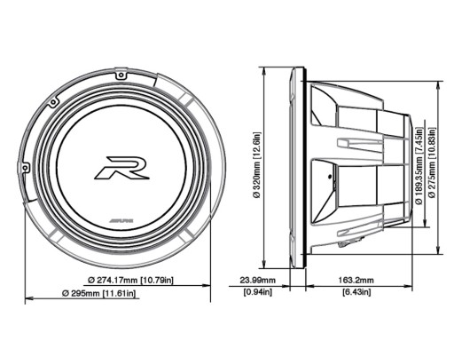 Subwoofery typu R zostały całkowicie przekonstruowane, aby zapewnić większą elastyczność ich montażu i uniwersalność zastosowań mającą na celu zbudowanie idealnego systemu odtwarzania dźwięku. Przy głębokości montażowej wynoszącej 164mm dla subwoofera 30 cm, te nowe konstrukcje zapewniają niemal 20% redukcję głębokości montażowej i oferują jednocześnie jeszcze większą moc wyjściową.