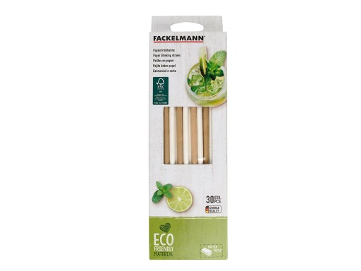 Ekologiczne słomki do picia? Istnieją! Słomki do picia Fackelmann są wykonane z przyjaznego dla środowiska papieru z certyfikatem FSC ™. Solidne słomki o długości 24 cm mają średnicę około 6 mm i dlatego są idealne do domowej lemoniady, koktajli mlecznych, koktajli, schłodzonych napojów itp. Opakowanie zawiera 30 ekologicznych słomek do picia, dzięki czemu przyjaciele i cała rodzina mogą przygotować słodkie lemoniady, soki , napoje i wiele więcej. Słomki w kolorze naturalnym brązowym i białym nadają się do recyklingu, kompostowania i są dostępne w ekologicznych opakowaniach papierowych. Nic nie stoi na przeszkodzie, aby beztroski spędzić wieczór na balkonie ze szklanką lemoniady w dłoni - bez wyrzutów sumienia.