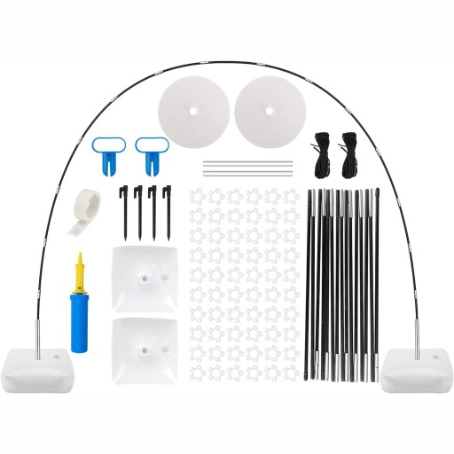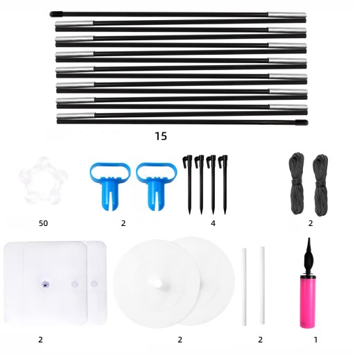 -Wysokość i szerokość łuku balonowego można regulować, dostosowując odległość między podstawami (lub składając pręt z włókna). Zakres regulacji wynosi od 2 m do 3 m.
