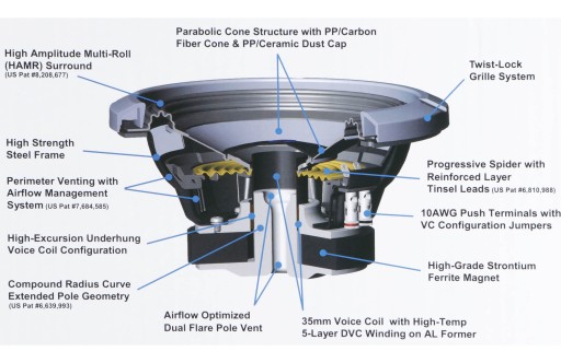 Subwoofery nowej generacji serii S są wyposażone w technologię High Amplitude Multi-Roll (H.A.M.R.) Surround firmy Alpine. Ta gumowa otoczka pozwala membranie subwoofera na efektywny przepływ powietrza przy jednoczesnym zachowaniu niskiej temperatury. Technologia ta pozwala na 13-milimetrowy skok w jedną stronę, co zapewnia niesamowitą dokładność subwoofera.