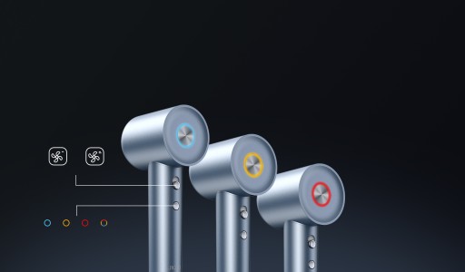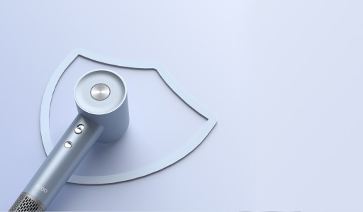 - Dzięki wysokoobrotowemu silnikowi bezszczotkowemu nie ma potrzeby stosowania tradycyjnych łopatek wentylatora, które są główną przyczyną hałasu. Wirnik nie ociera się o korpus silnika, co dodatkowo zmniejsza hałas suszarki do włosów, prowadząc do niższego poziomu hałasu 59 dB i dłuższej żywotności.