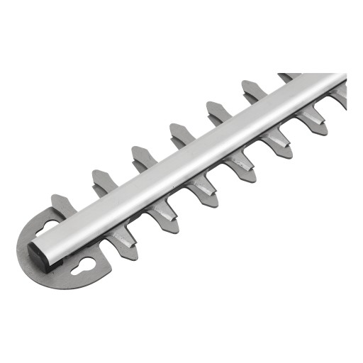 Właściwe cięcie jest wykonywane przez listwę tnącą o długości 670 mm (z czego długość cięcia wynosi 580 mm), zapewniającą zakres cięcia do 20 mm. Na pewno zastanawiasz się, jakie zalety ma listwa tnąca wycinana laserowo? W skrócie można powiedzieć, że każde ostrze na listwie jest wycinane z wysoką dokładnością i ma taką samą jakość. Dzięki temu ostrza długo zachowują ostrość, a gałęzie i liście mniej się w nich zacinają.
