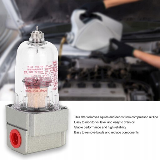 5. Ten filtr usuwa płyny i zanieczyszczenia z przewodu sprężonego powietrza, przedłużając żywotność narzędzi i akcesoriów do sprężarek.