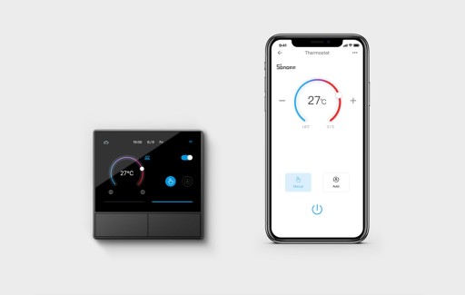 Przełącznik ścienny Sonoff został wyposażony w panel HMI z ekranem dotykowym, który zapewnia szybki dostęp do wielu przydatnych funkcji. Za jego pomocą z łatwością obsłużysz oświetlenie, dostosujesz pracę klimatyzacji i nie tylko! Co więcej, pod wyświetlaczem znajdują się 2 fizyczne przyciski, które pozwolą na niezależną kontrolę 2 urządzeń - na przykład takich, których używasz najczęściej.