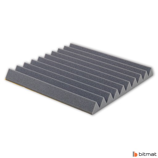 Pianka akustyczna w kształcie klina 50 cm x 50 cm marki Bitmat to bardzo dobry sposób na poprawę akustyki w pomieszczeniach mieszkalnych, biurowych czy salach prób, a także ochrony przed niechcianymi odbiciami dźwięku. Pianka o strukturze otwarto-komórkowej ma za zadanie pochłaniać i rozpraszać fale dźwiękowe, aby zniwelować echo oraz skrócić czas pogłosu. Poza właściwościami akustycznymi oferuje także atrakcyjny wygląd, który będzie pasował do większości pomieszczeń.