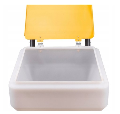 Zbiornik na materiał wykonany z solidnego tworzywa sztucznego.