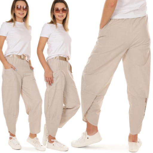 F671 ЛЬНЯНЫЕ БРЮКИ 7/8 Тюльпаны