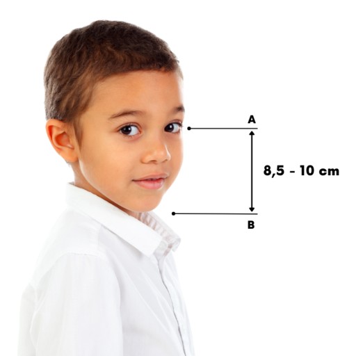 ➡️ Zalecamy pomiar twarzy, aby upewnić się, że maska będzie pasować. Należy zmierzyć odległości od brody do górnej części nosa – według instrukcji na zdjęciu.
