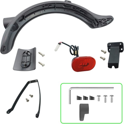 Wszystko, czego potrzebujesz, znajduje się w naszym kompletnym zestawie: 1 osłona przed błotem, 1 tylny światełko, 3 nakładki na śruby oraz 3 śruby. Nie trać czasu na poszukiwanie dodatkowych części - z nami jesteś gotowy do jazdy od momentu otwarcia paczki! 🛵