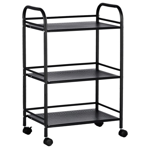 Pomocnik na kółkach wykonany ze stali nierdzewnej proszkowanej. Posiada cztery głębokie koszyki. Regał na obrotowych (360°) kółkach. Dwa z nich posiadają blokadę, dzięki której wózek stabilnie stoi nawet na nierównej powierzchni. Posiada solidne uchwyty ułatwiające przenoszenie.