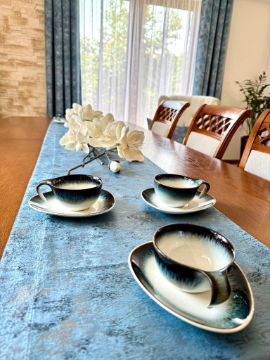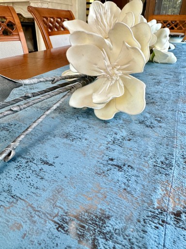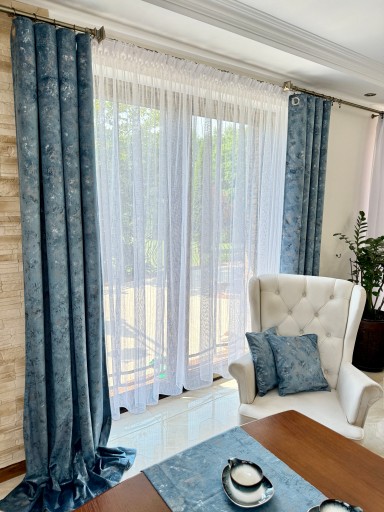 Przedmiotem sprzedaży jest wyjątkowa tkanina Velvet w kolorze błękitnym . W odróżnieniu od większości kolekcji z tej kategorii posiada efekt cieniowania . Materiał jest niezwykle szykowny i może odmienić wiele wnętrz. Warto zaznaczyć, że struktura może ulegać delikatnej zmianie optycznej, co jest powiązane z tym, że włoski zmieniają swoje położenie pod wpływem dotyku. Jest to bardzo pożądane, jeżeli chodzi o efekty wizualne . Przepiękne dodatkowe zdobiona przecierką w kolorach ciepłego delikatnego złota i lekkiego srebra tworzą niesamowity efekt wizualny ( lewa strona tkaniny jest bez wzoru) .