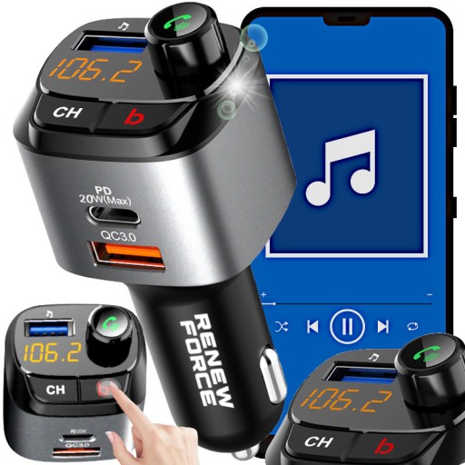 TRANSMITER FM ADAPTER BLUETOOTH USB SD MP3 QC 3.0
