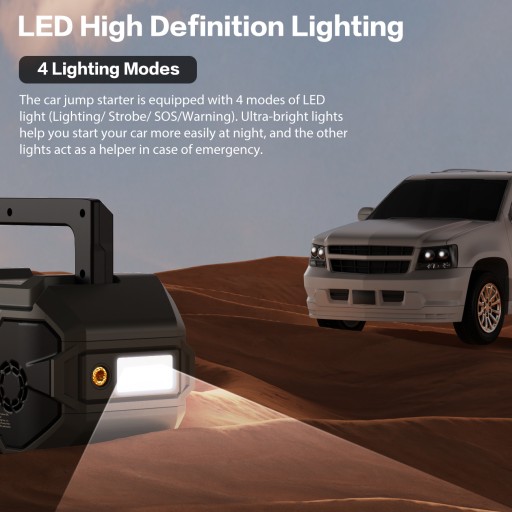 Światło LED o mocy 400 lumenów - rozrusznik akumulatora wykorzystuje jasną latarkę LED z 4 trybami (podświetlenie/szybkie miganie/SOS/ostrzeżenie) w różnych okolicznościach - pomagając znaleźć drogę w sytuacji awaryjnej lub podczas wyprawy przygodowej.