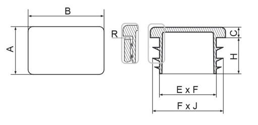 Заглушка профильная черная 20х30 прямоугольник 5 шт.