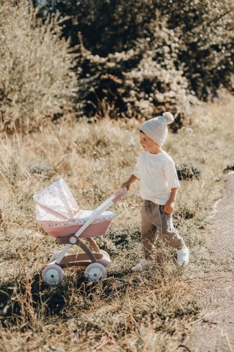 Miękki dach można opcjonalnie złożyć, jeśli dzień jest wyjątkowo słoneczny. Wózek jest łatwy w utrzymaniu czystości - tkaninę w delikatny wzorek możesz przetrzeć wilgotną gąbką i gotowe!