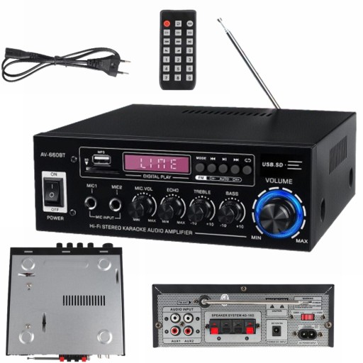 ✔️Z radiem FM, 5-pasmowym mikserem EQ, z regulacją pogłosu mikrofonu i opóźnienia.